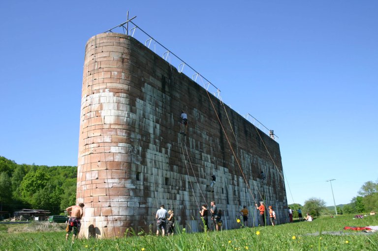am Brückenpfeiler der ehemaligen Autobahnbrücke bei Waldaschaff: Kletterpfeiler Waldaschaff,