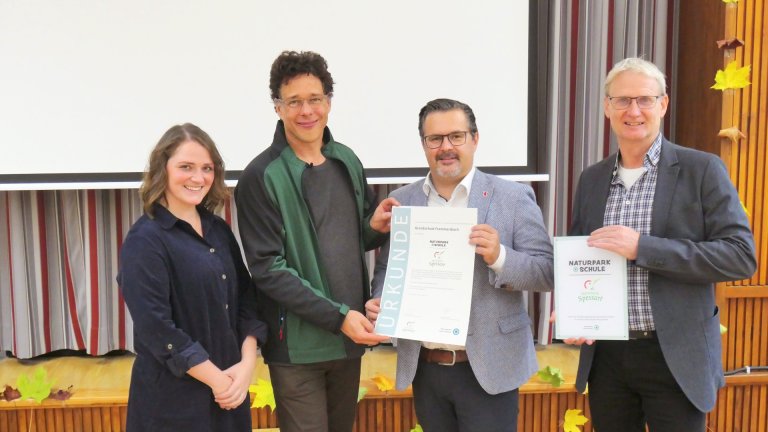 Am 27. Oktober 2023 übergab Oliver Kaiser, Geschäftsführer des Naturparks Spessart die Urkunden des Verbandes Deutscher Naturparke (VDN) an die Schulleitungen bzw. Gemeindevertreter.