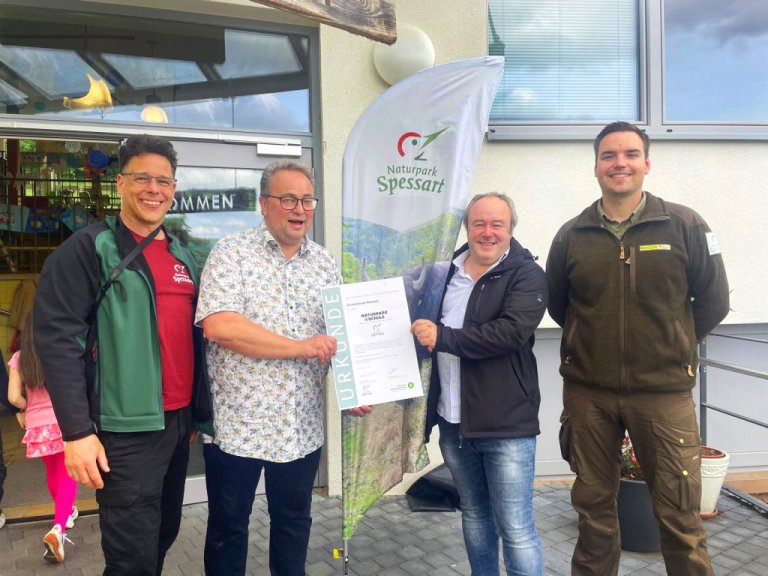 Nach einem erfolgreichen Pilotjahr wurde die Grundschule Rieneck im Rahmen ihres Schulfests als neue Naturpark-Schule zertifiziert. Oliver Kaiser, Geschäftsführer des Naturparks Spessart e.V., übergab die Urkunde des Verbandes Deutscher Naturparke (VDN) an Schulleiter Michael Bäuerlein. Auch Bürgermeister Sven Nickel war bei der Feierlichkeit anwesend.