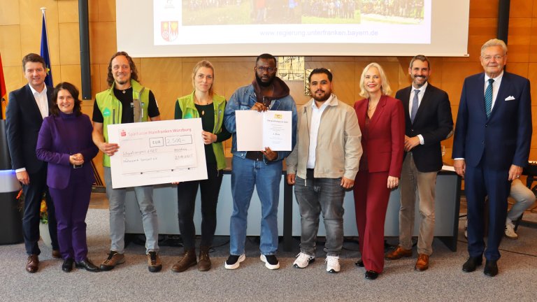 Regierungspräsidentin Dr. Susanne Weizendörfer und Staatssekretär Sandro Kirchner zeichneten am 23. Oktober 2025 den Naturpark Spessart e.V. mit dem 1. Platz des unterfränkischen Integrationspreises aus. Mit der Auszeichnung ist ein Preisgeld von 2.500 € verbunden.