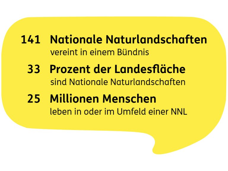 Unser Bündnis vereint 141 Nationale Naturlandschaften (NNL) und besteht aus 16 Nationalparken, 104 Naturparken, 18 Biosphärenreservaten und 3 Wildnisgebieten in Deutschland. Zusammen setzen wir uns auf einem Drittel der Landesfläche für Naturschutz, Klimaschutz und ein nachhaltiges Leben ein.