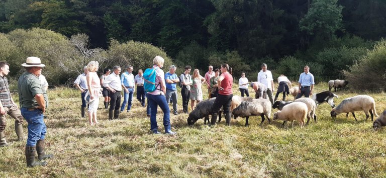 Bei den öffentlichen Führungen der Gebietsbetreuung sind die „Gummistiefel-Exkursionen über die Büffelweide“ ein Renner. Auf dieser abenteuerlichen und nicht ganz schmutzfreien Führung werden die Zusammenhänge zwischen Beweidung und Biodiversität anschaulich vermittelt.
